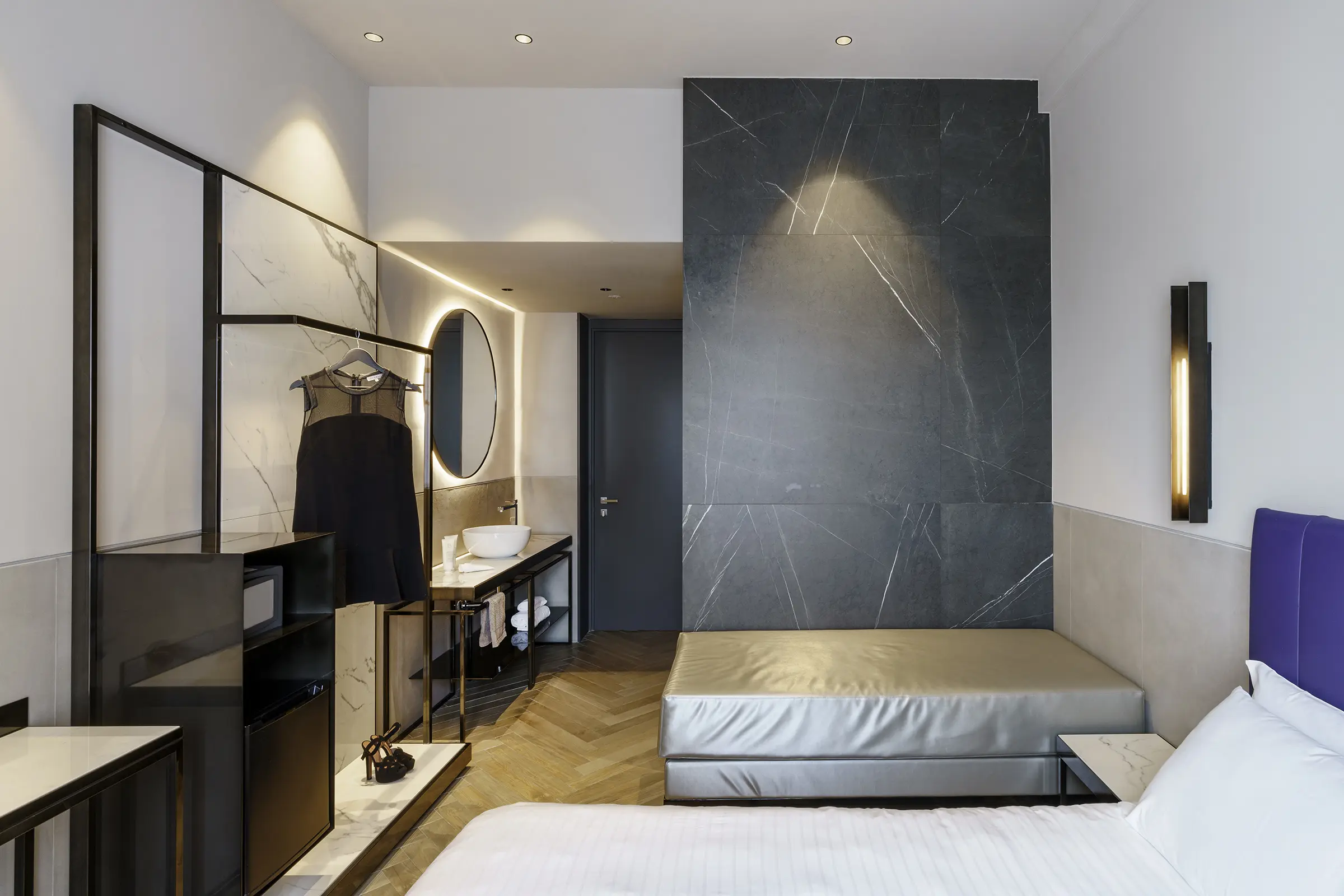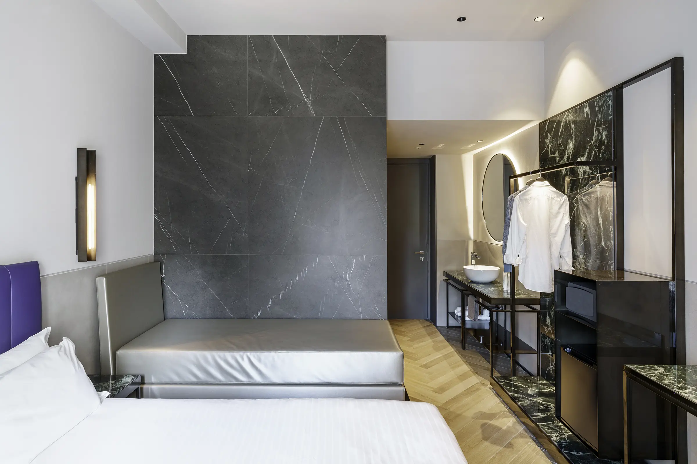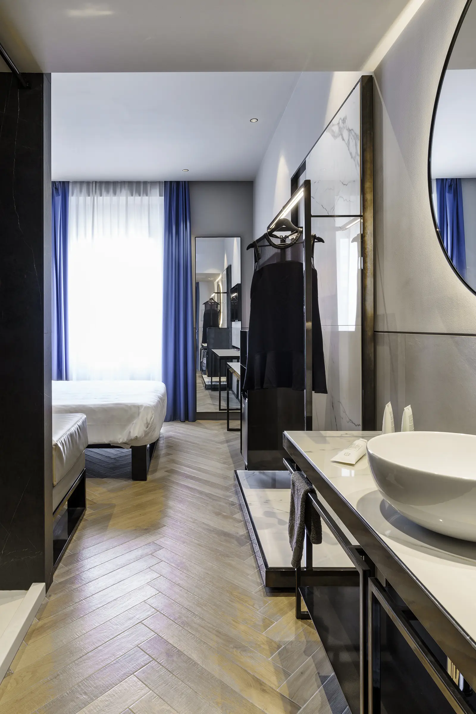 L'hotel si distingue per il suo design raffinato, offrendo un'ospitalità di alto livello in un contesto urbano dinamico. Il design illuminotecnico, curato da HI LITE Next, valorizza ogni dettaglio, esaltando i colori e le forme della brand image dell'hotel e creando un'atmosfera vibrante, calda e sofisticata.