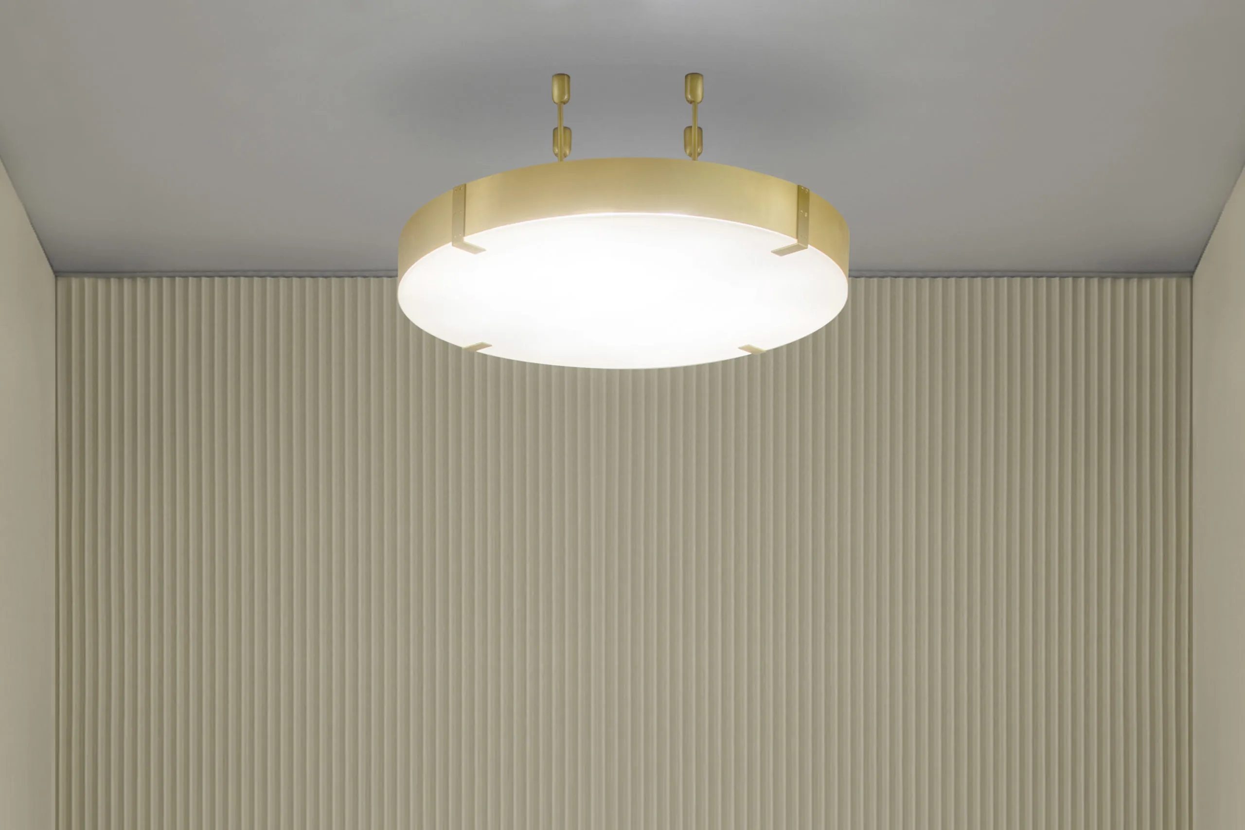 TONDA Progettata nel 2017 da storagemilano, è ispirata all’atmosfera intima e calda degli ingressi milanesi di una volta. La lampada a sospensione Tonda è un disco opalino bianco latte abbracciato da quattro archi in ottone e arricchito da altrettante pinze; la luce che genera è morbida e delicata.