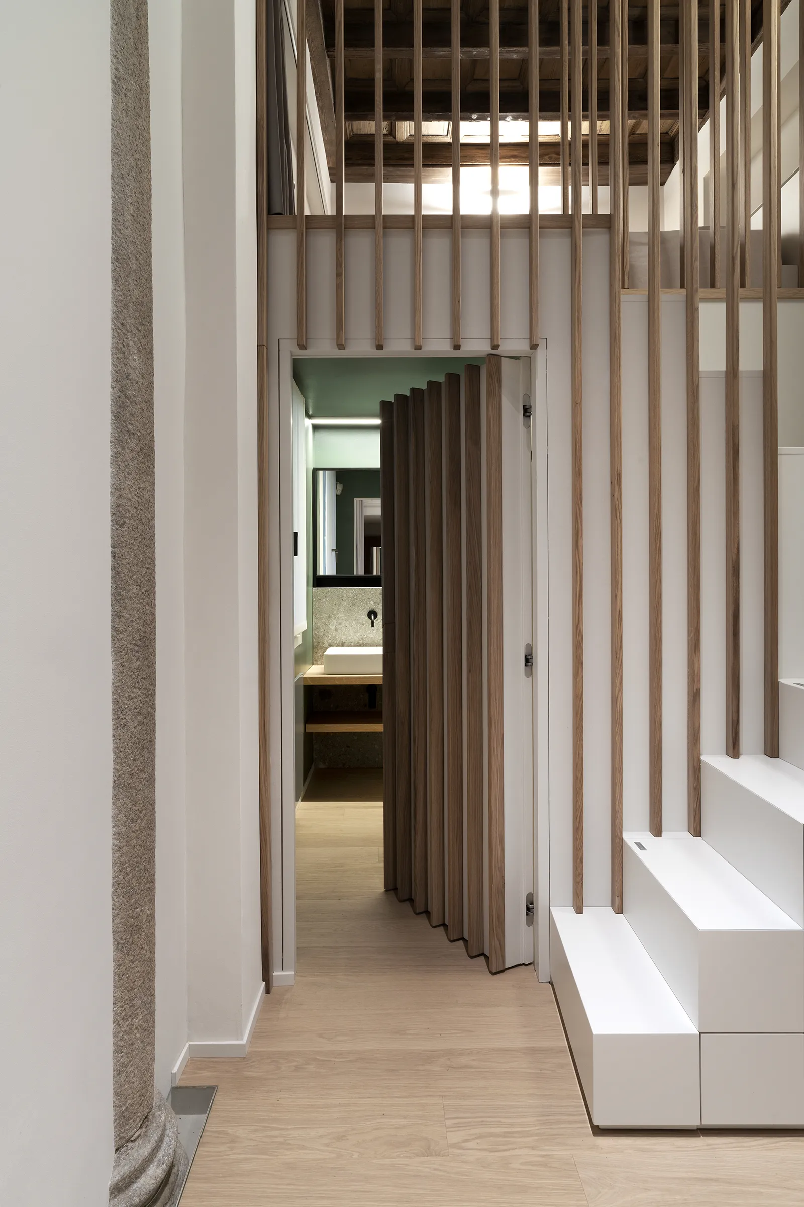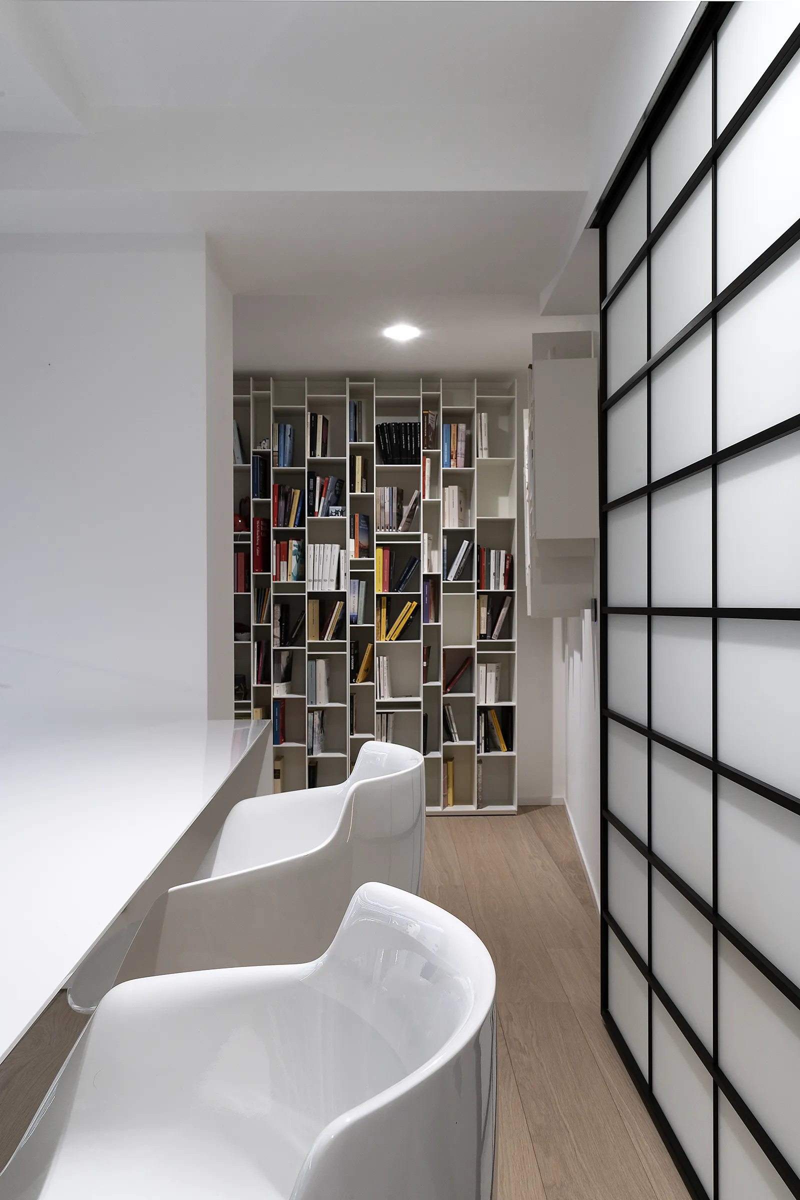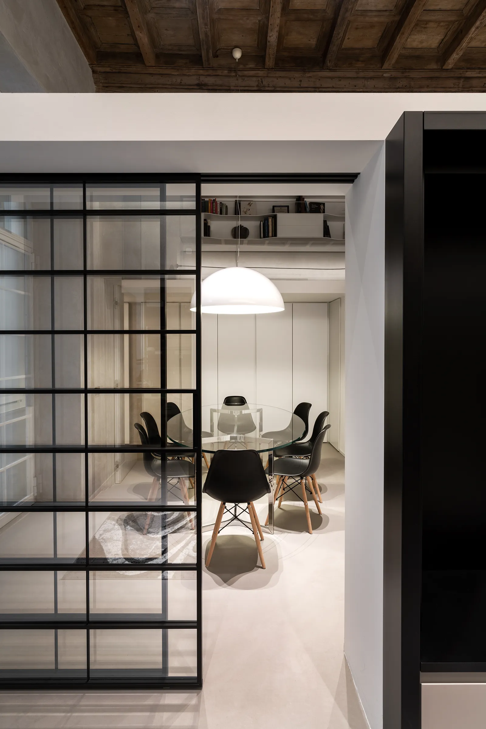 Milano, ItaliaL'ispirazione di questo progetto è stata quella di creare uno spazio che si sviluppa come una serie di spazi segreti, tipici del centro storico di Milano. L'obiettivo era superare la struttura dell'edificio antico attraverso un design contemporaneo che garantisse un'atmosfera moderna. Inoltre, era fondamentale garantire un'adeguata illuminazione naturale per tutti gli ambienti, il che è stato possibile creando nuove aperture che permettessero alla luce di filtrare attraverso un ampio lucernario nella zona giorno fino alle stanze più private.