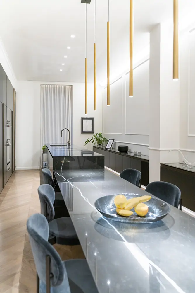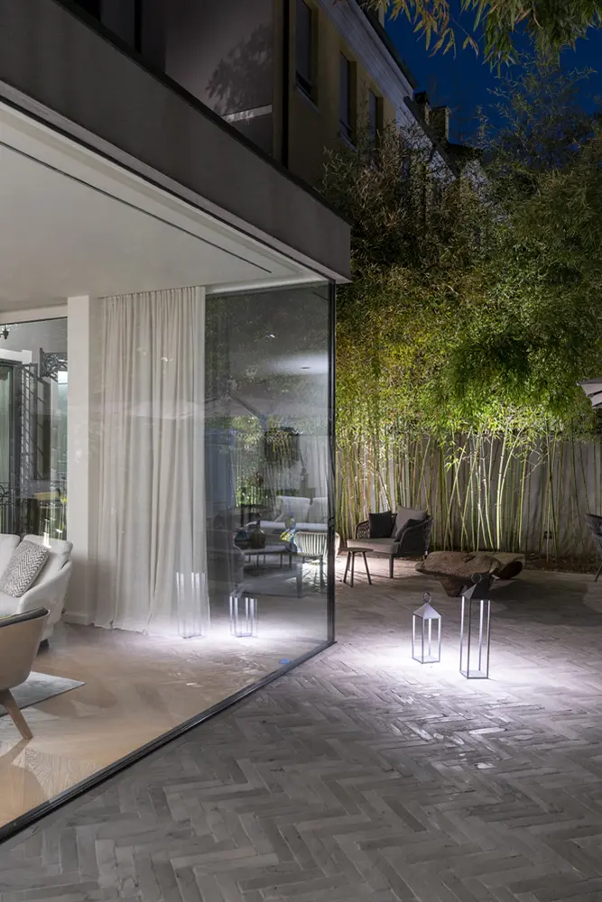 La visione dell'architetto Simone Del Portico prende vita nella sua casa studio: design elegante, cura dei dettagli e un salone con ampie pareti di vetro che si affaccia nel grande giardino privato nel cuore di Milano. Un santuario di eleganza contemporanea.